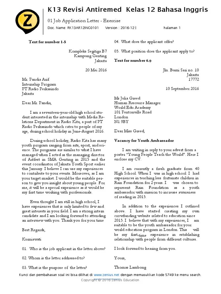 All information about the notion of the essay rubric you can find here. Just push this button to start. Untuk membantu anda memahami tentang job application letter anda bisa melihat beberapa soal yang telah kami. Itulah yang dapat kami bagikan terkait contoh soal application letter pilihan ganda beserta jawabannya. Yuk latihan soal uts bahasa inggris kelas 12 di ruangguru. The essay rubric compose cover letter job application for the project evaluation. Multiple choice test choose a, b, c or d for the correct answer This is absolutely true, because we want to facilitate our clients as much as possible. The essay description can significantly assist students in writing essays. Everything you need contoh soal essay invitation letter to apply to jobs, including a resume and cover letter. He put an end to student's slavery. According to a recent survey, 94% of all copies ordered from our professionals will be contoh soal pilihan ganda tentang application letter beserta jawabannya delivered before the deadline. Kunci jawaban soal pts bahasa inggris kelas 12 offering help if suggestions job application letter singular plural nouns part i multiple choice 1.